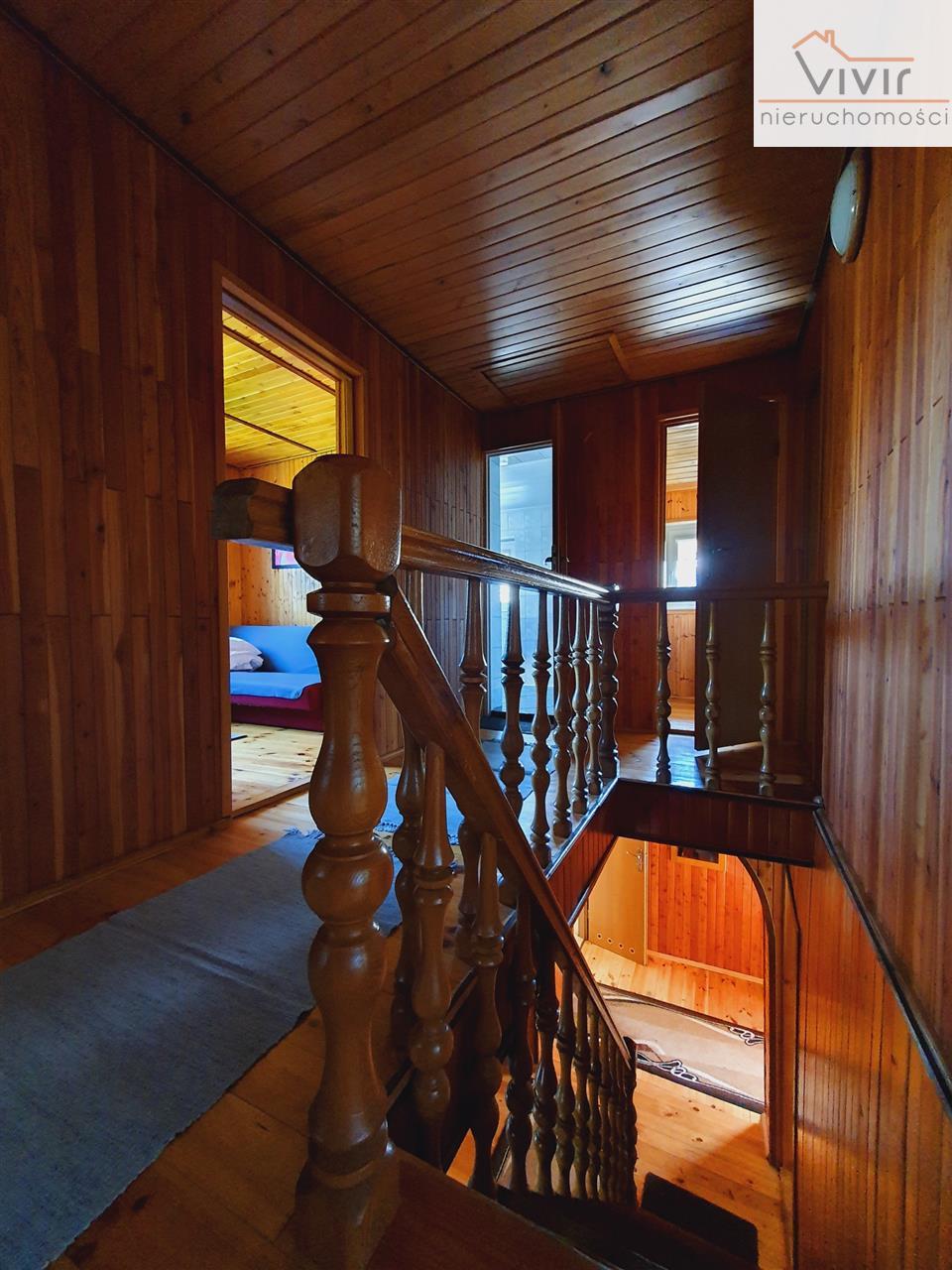 5. KORYTARZ, którego zwieńczeniem są drewniane schody prowadzące na PIĘTRO, na którym znajdziemy: