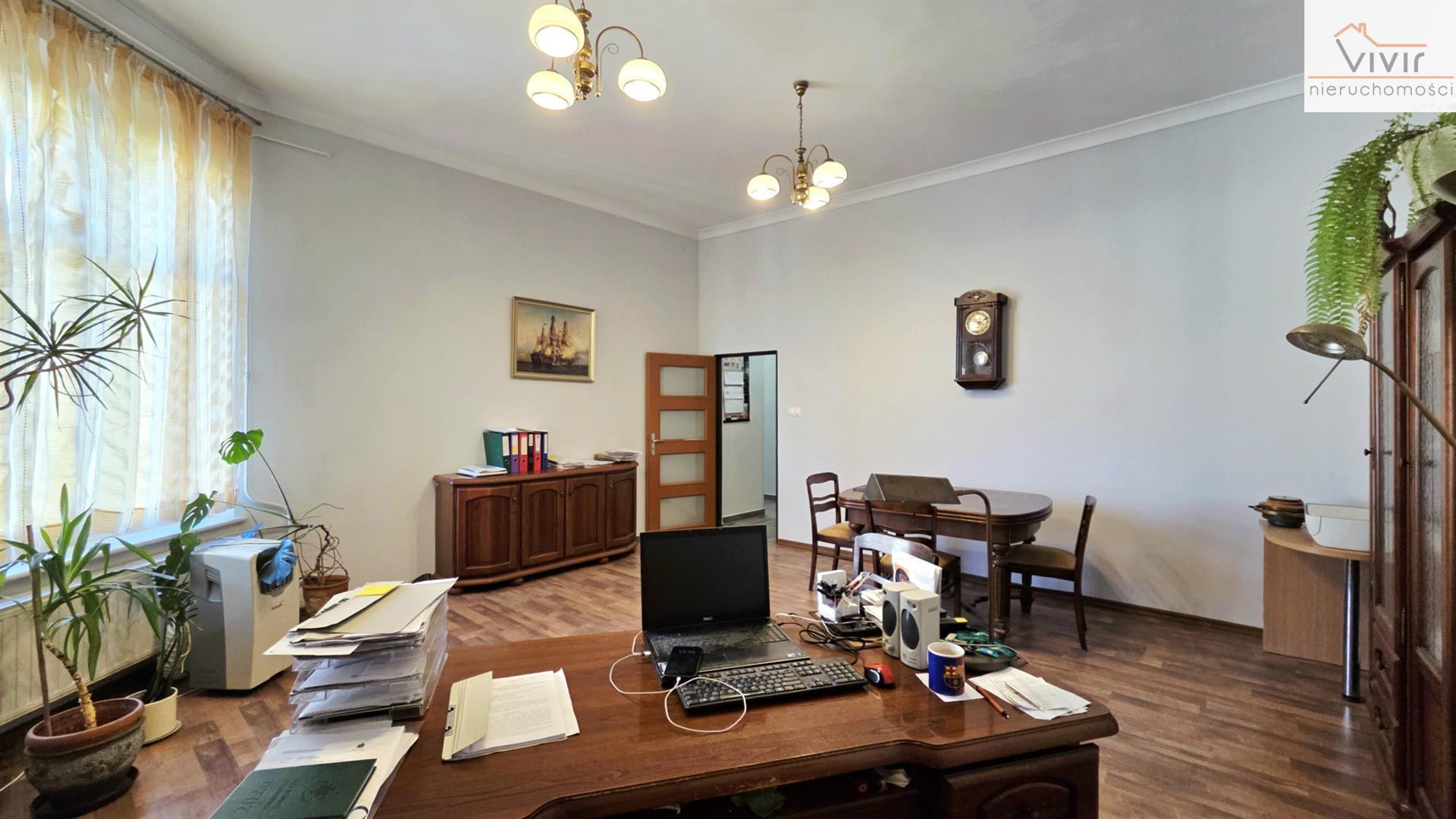 Obecnie w lokalu znajdują się pomieszczenia biurowe, a oferowana nieruchomość składa się z: