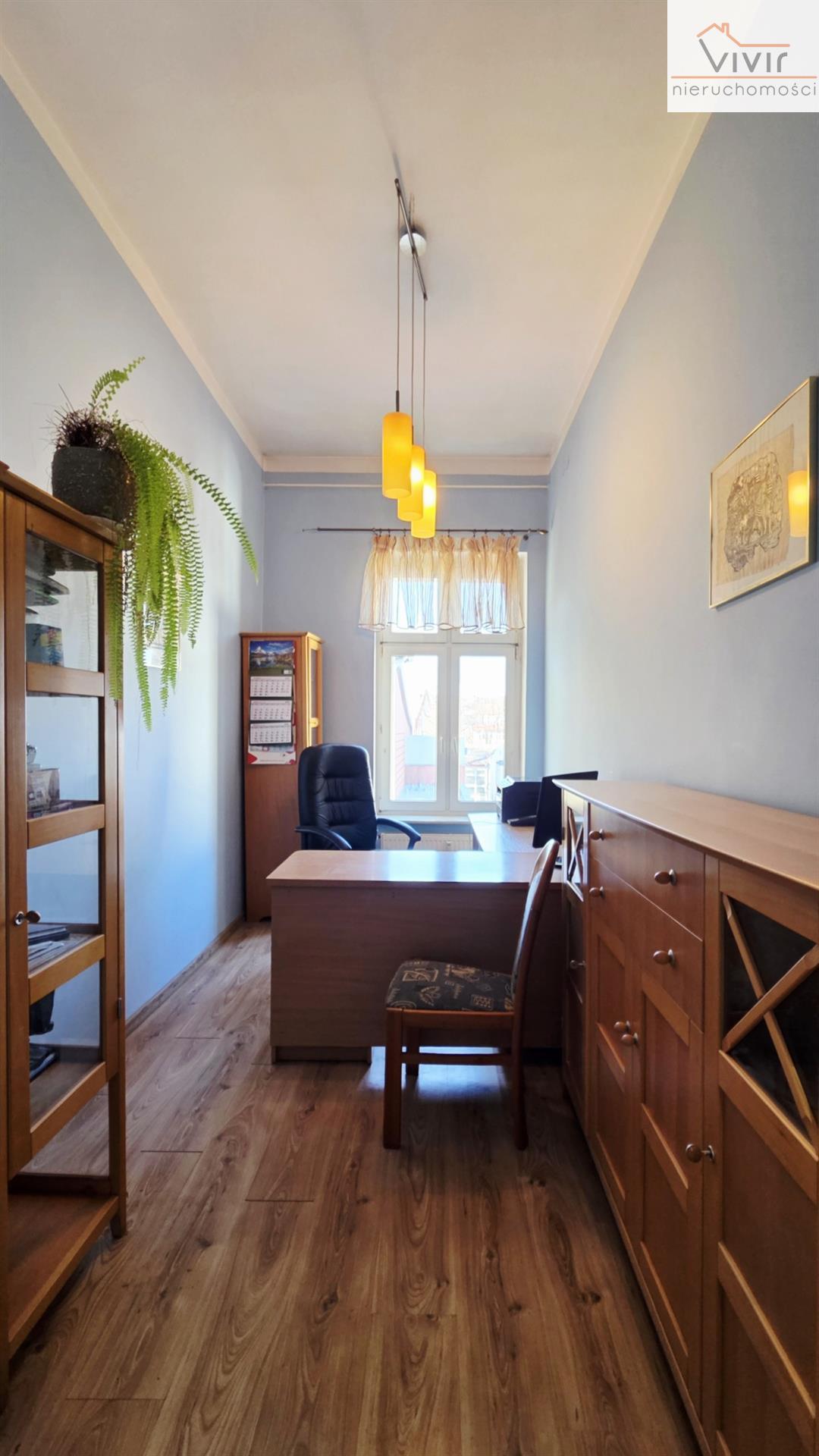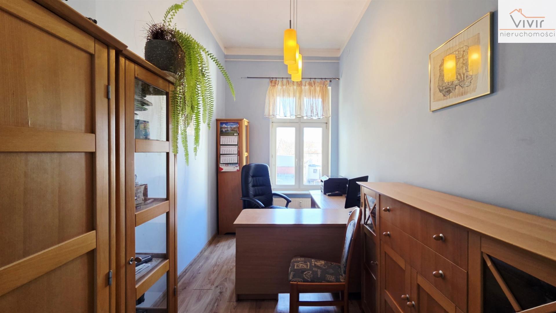 Oferowany lokal doskonale nadaje się do prowadzenia w nim działalności KANCELARYNEJ, BIUROWEJ czy GABINETU, aczkolwiek jak wspomniałem powyżej – dla zainteresowanych - przywrócenie w nim MIESZKANIA nie stanowiłoby większych trudności. Nieruchomość wyróżnia się swą wysokością sięgającą 380 cm. Lokal jest jednostronny z wystawą okien NIE w kierunku głównej ulicy, przez co do pomieszczeń nie dochodzą jakiekolwiek odgłosy z zewnątrz, zwłaszcza komunikacyjne. Gwarantowana cisza i spokój w samym sercu miasta. Oferowana nieruchomość mieści się w zabytkowej i gruntowanie odrestaurowanej kamienicy, która posiada wewnętrzny PARKING dla lokatorów i okazicieli identyfikatorów Wspólnoty Mieszkaniowej.